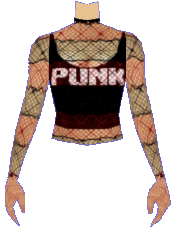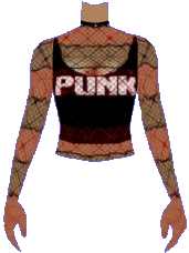 For serious PUNKS only! This red and black striped fishnet top with black tanktop underneath will go great with anything you can think of. |