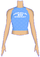 The Old Avie blue halter top. Features an embroidered velvet design, and the "Old Avie Allstar" logo in the center. |