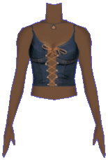 Laced and ready for a night out at the Inferno Bar. This form fitting denim top is laced at the front and features a teardrop pendant. |
