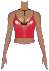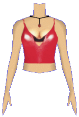 Latex your suit of choice? Express your wild side in this red, tight fitting latex top. This shirt features a black strapless bra and a ruby pendant. |
